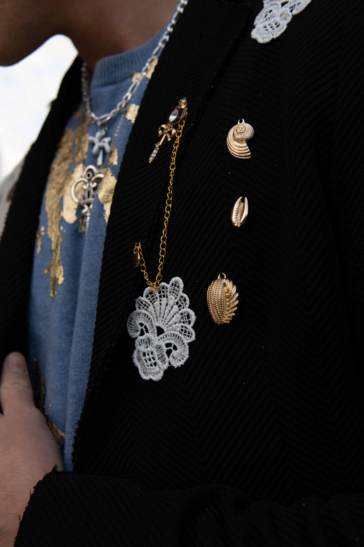 A fel nem használt fém alkatrészeket (láncok, gombok, díszek) olvasztással és újraformálással építjük vissza a következő kollekciókba. -