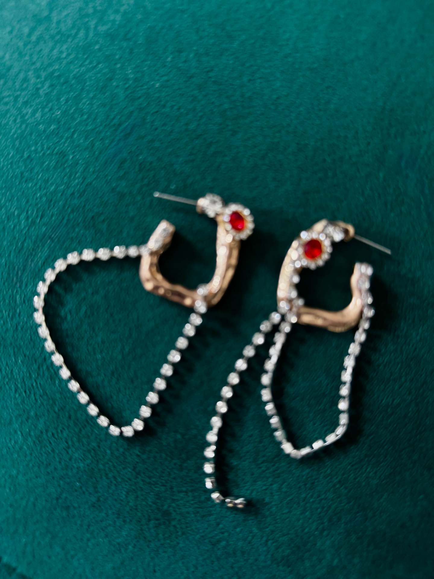 A kézzel formázott orvosi fém és a finoman mozgó kristálylánc kontrasztja egyszerre érzéki és futurisztikus.