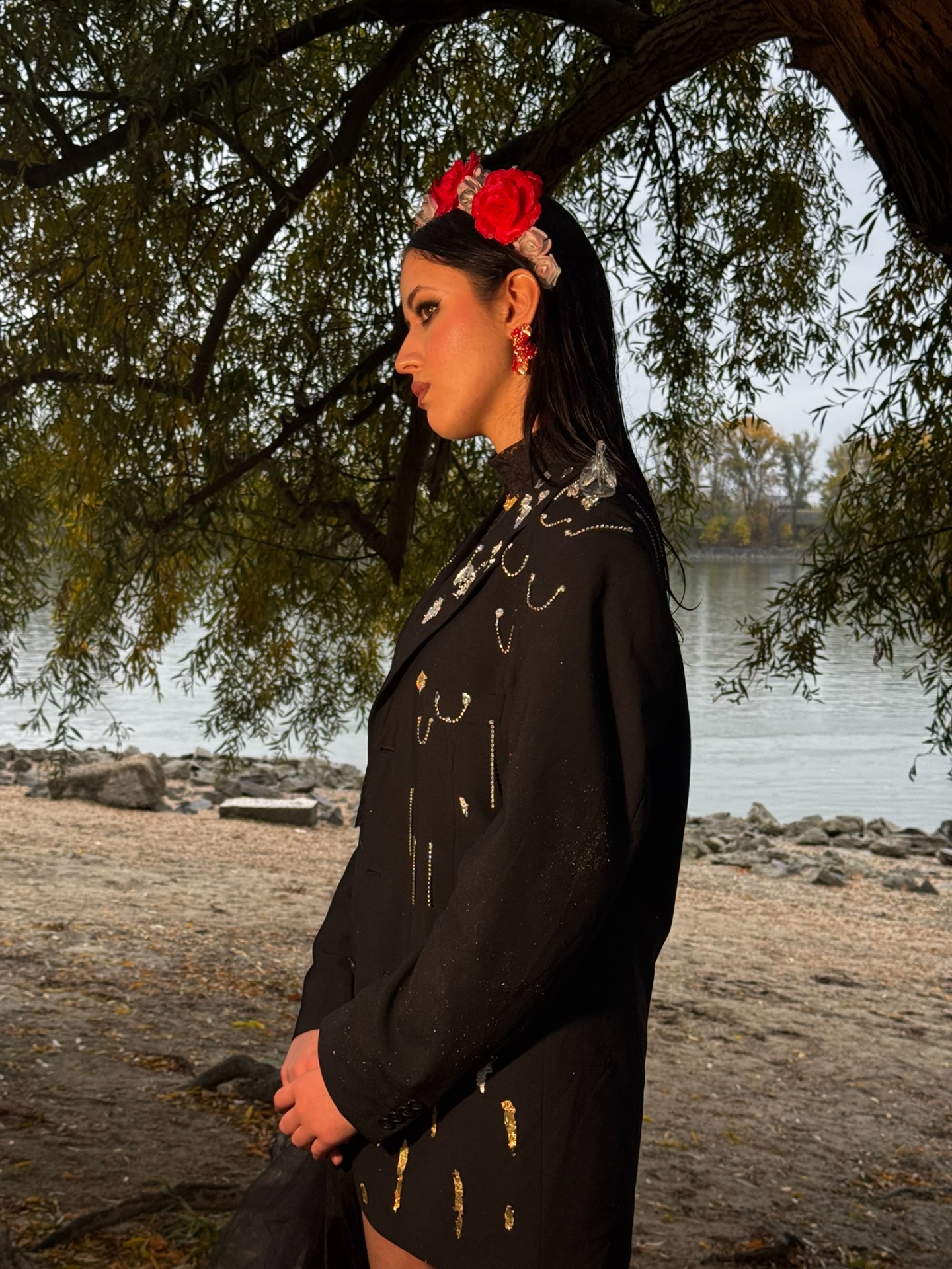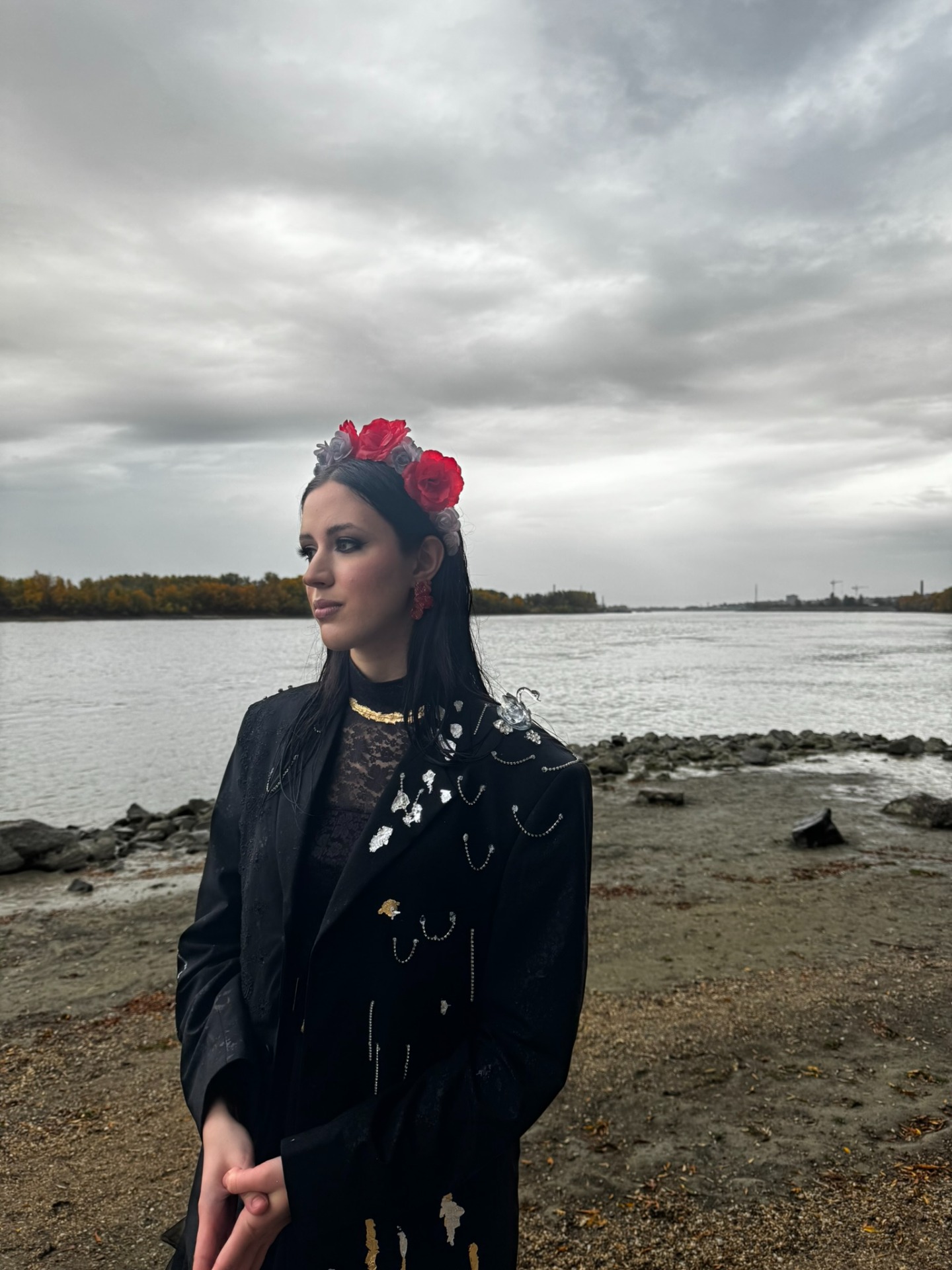 This piece is a Hungarian artisan creation, blending traditional floral crown motifs with contemporary design language.