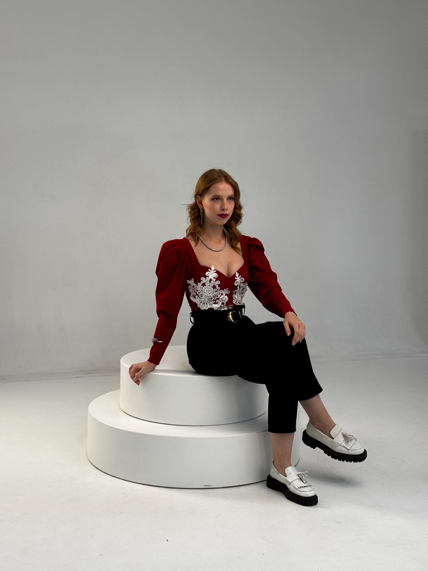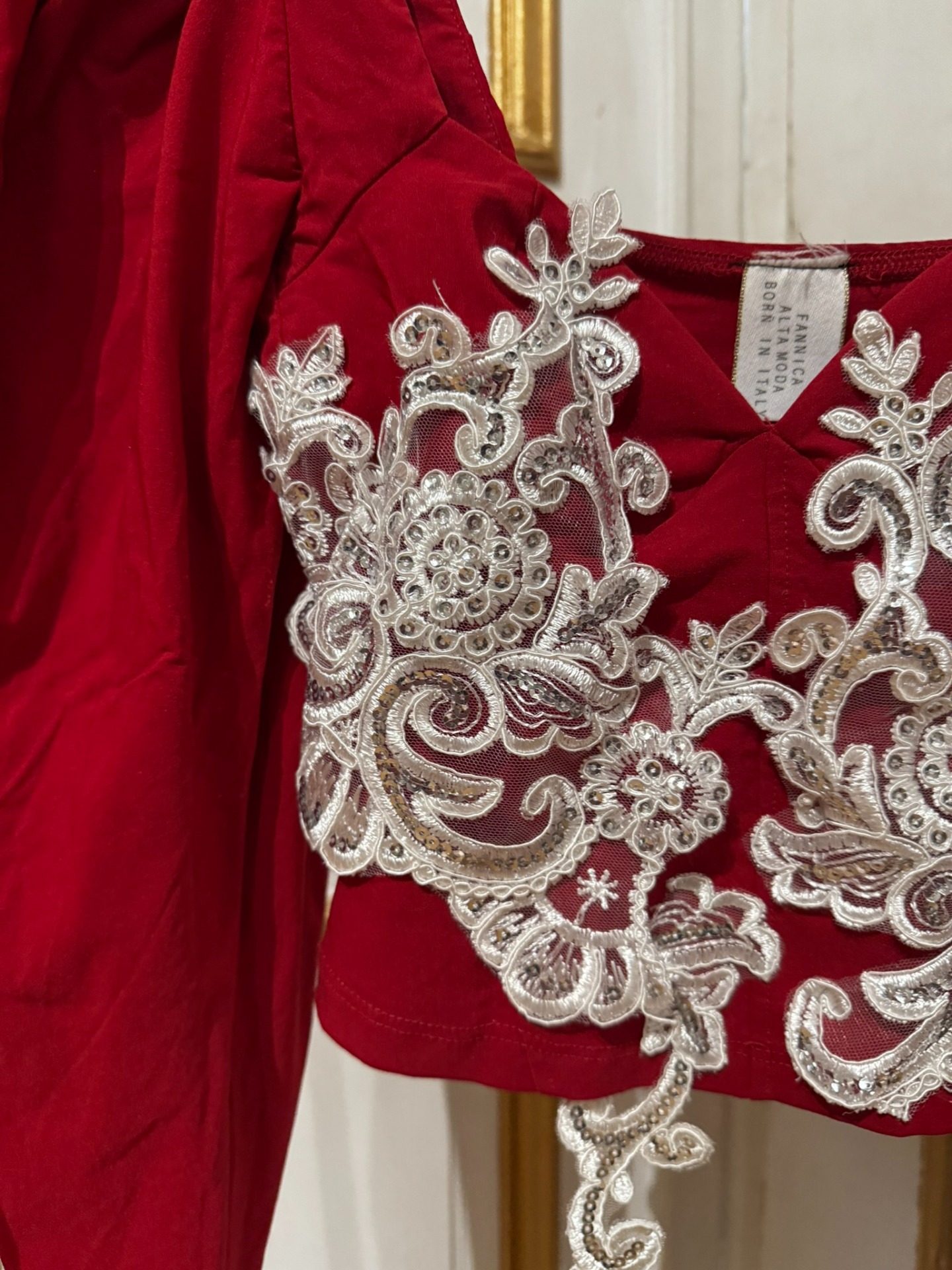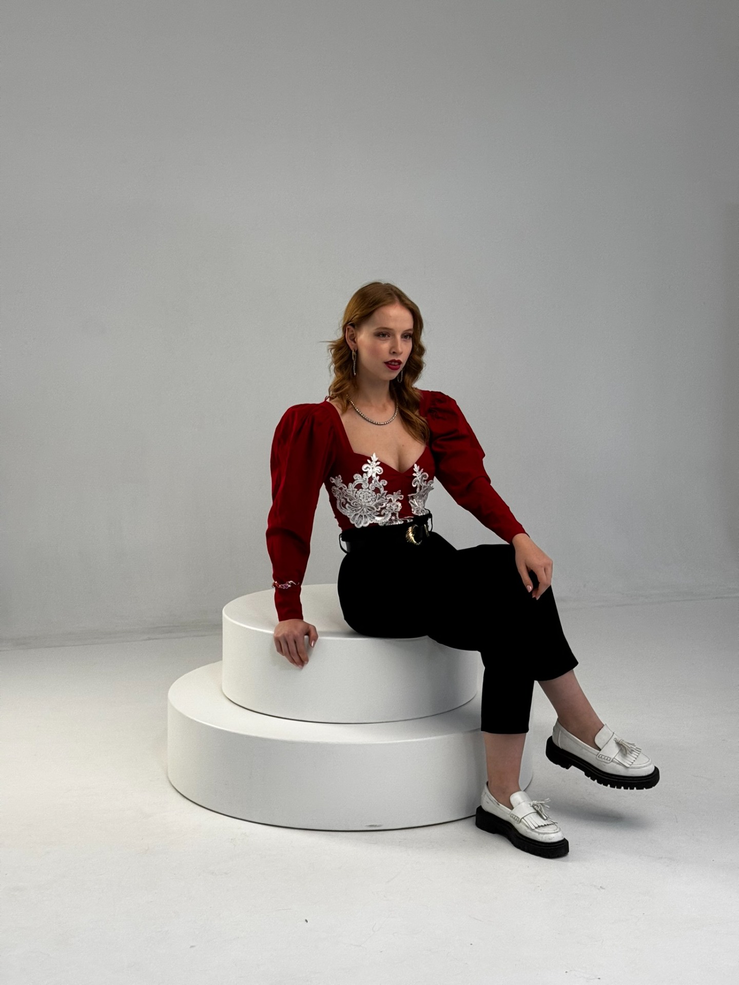 A Crimson Lace felső a barokk inspirációt modern, fenntartható szemléletben értelmezi újra.