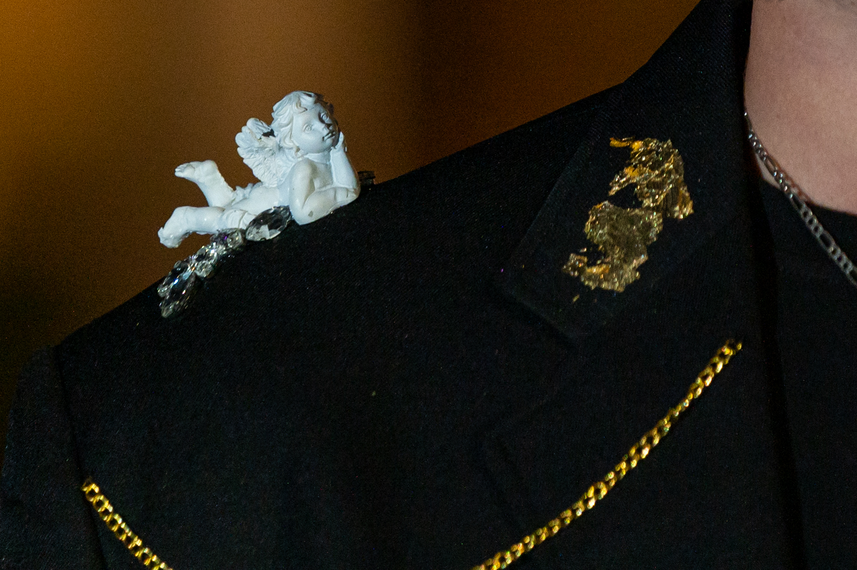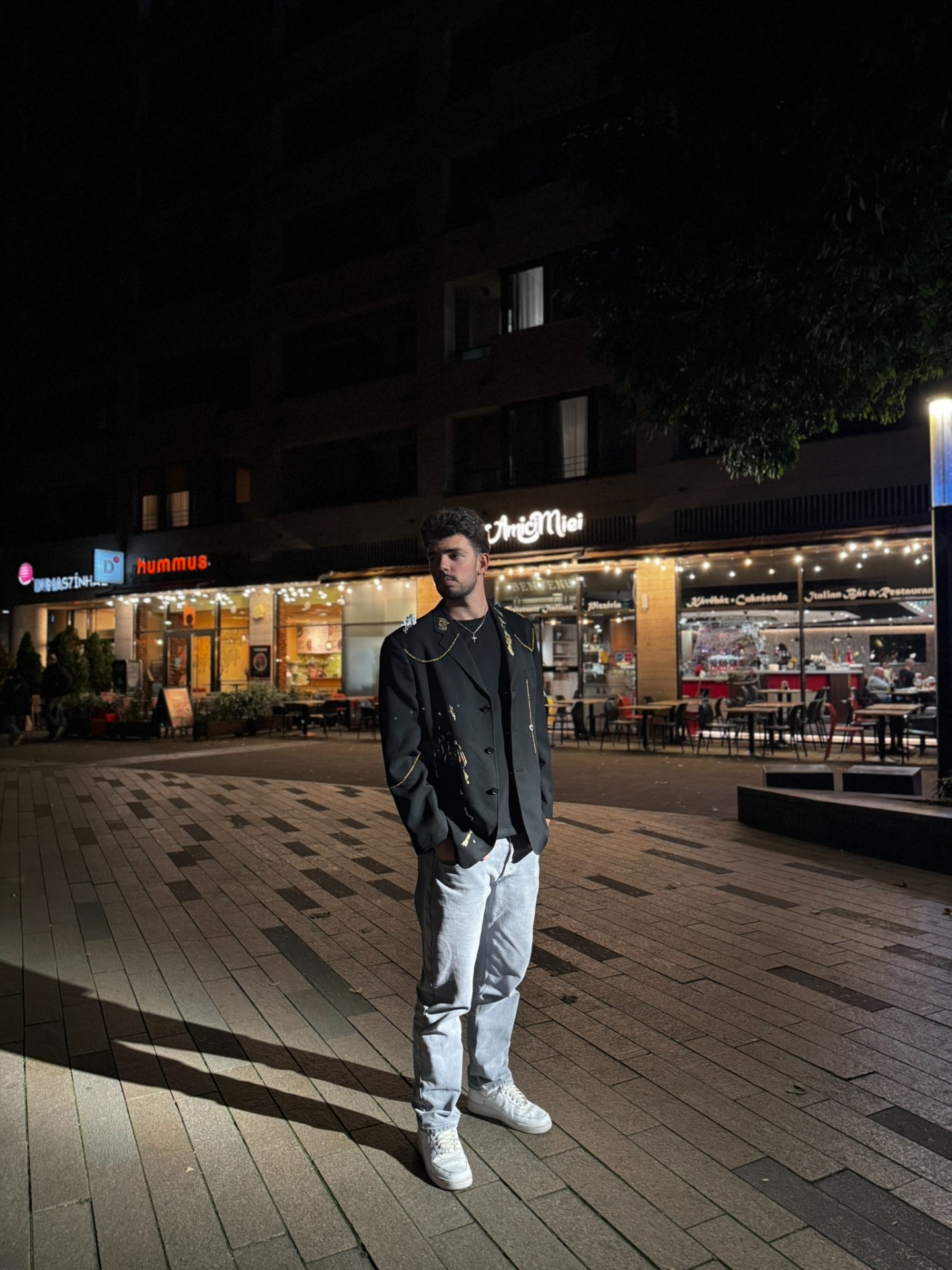 A zakó a városi elegancia és az avantgárd couture közötti egyensúlyt teremti meg – kifinomult, mégis karakteres.