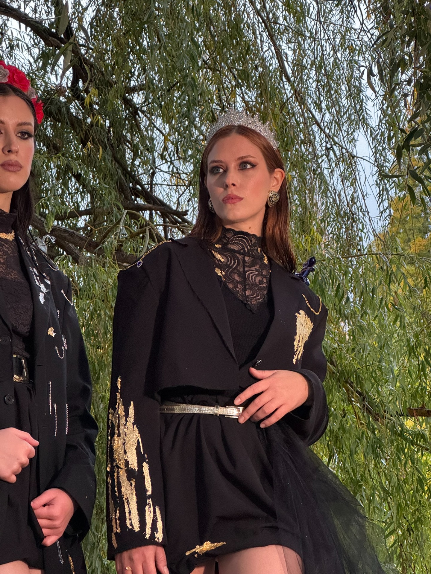 A korona a klasszikus uralkodói eleganciát idézi, miközben modern, szoborszerű formájával a Fannica Alta Moda világának avantgárd esszenciáját hordozza.